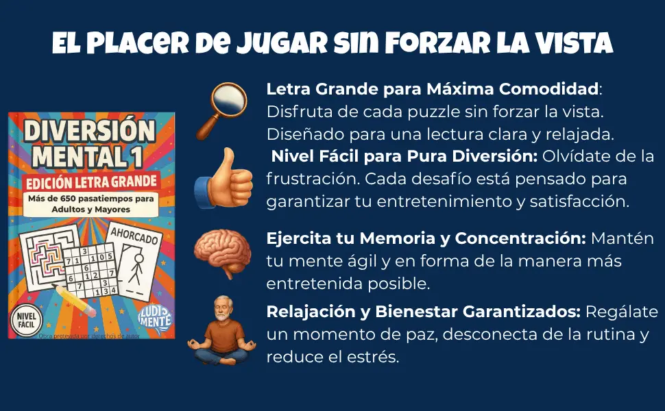 Ya has visto todo lo que Diversión Mental 1 puede hacer por ti. Es más que un libro, es una inversión en tu bienestar mental.